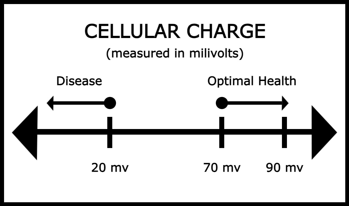 Health starts within your cells. A high electrical charge within your cells will lead you to experience health and a low electrical charge will lead you to experience disease. The goal is to charge our cells to facilitate good health.